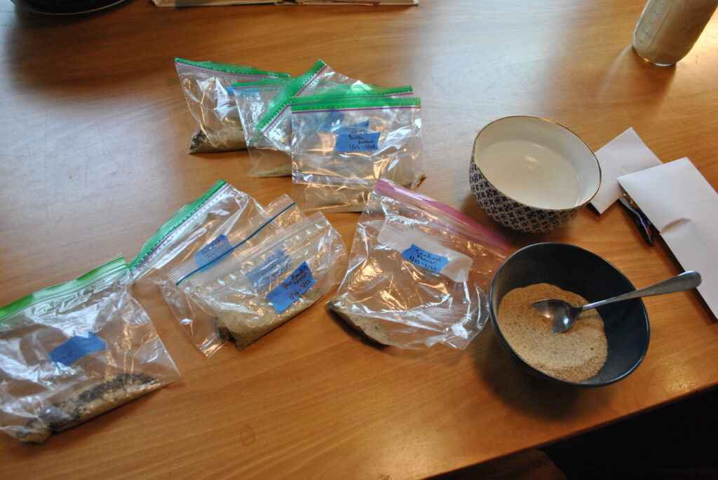 Every year around this time I start putting little baggies of damp sand and seeds into the back of my fridge in a march towards spring. First the 8 week seeds, then the 6 week, then 5 then 4…etc. Then sometime in march they all come out and get planted under some grow lights. In this way when spring rolls around I have hundreds of wild flower ready to go.