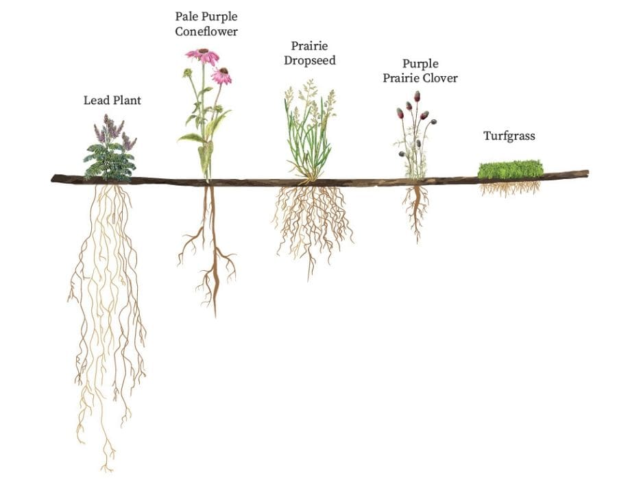 The lifecycle of native plants is pretty amazing. Most native wild flowers are Herbaceous Perennials, meaning they are non-woody plants that die back to the ground every winter and re-sprout every spring from deep roots. Incidentally this is one of the reasons why high grass prairie is one of the best ways to store carbon to fight global warming.